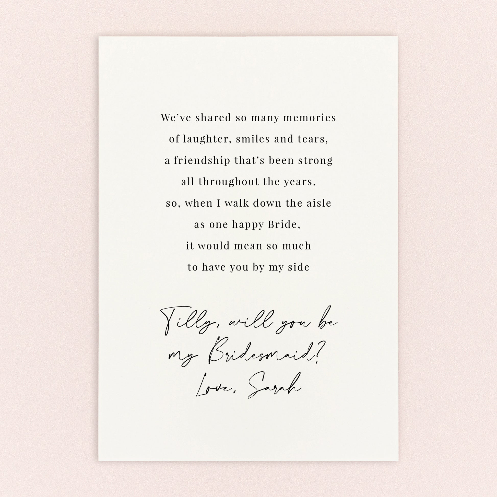 Personalised Bridesmaid Proposal Cards! The perfect way to invite your besties to join your big day. Our wedding stationery is fabulously designed and printed with love. These A6 postcards are double-sided and come with FREE envelopes. You can add your own special message too!