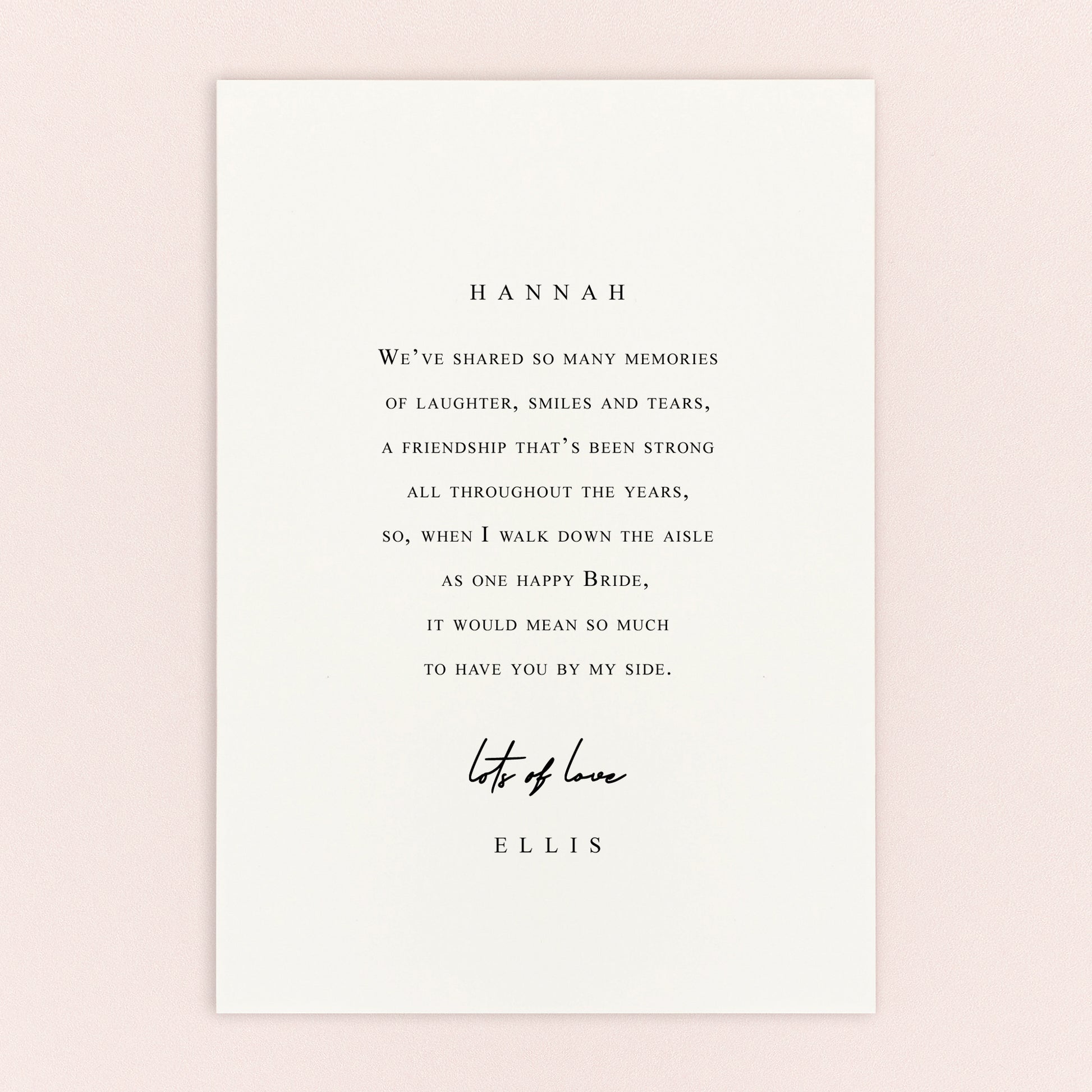 Personalised Bridesmaid Proposal Cards! The perfect way to invite your besties to join your big day. Our wedding stationery is fabulously designed and printed with love. These A6 postcards are double-sided and come with FREE envelopes. You can add your own special message too!