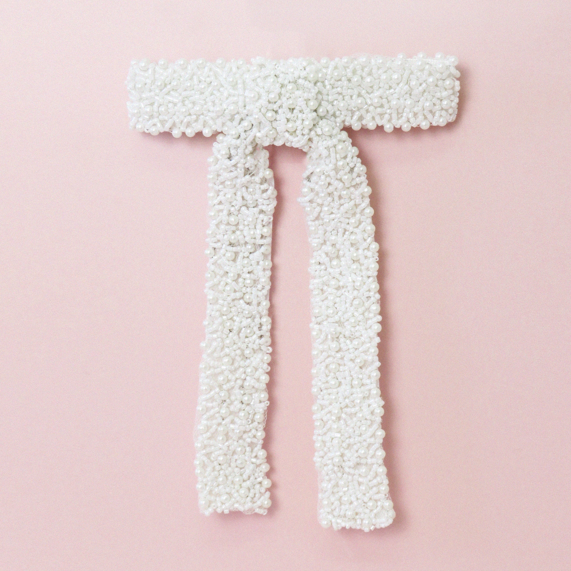 Add a touch of bridal luxury with our pearl-embellished hair bow. Effortlessly elegant — the perfect finishing touch for hen nights, wedding mornings, or bridesmaid looks. Secured with a sturdy clip for all-day wear.