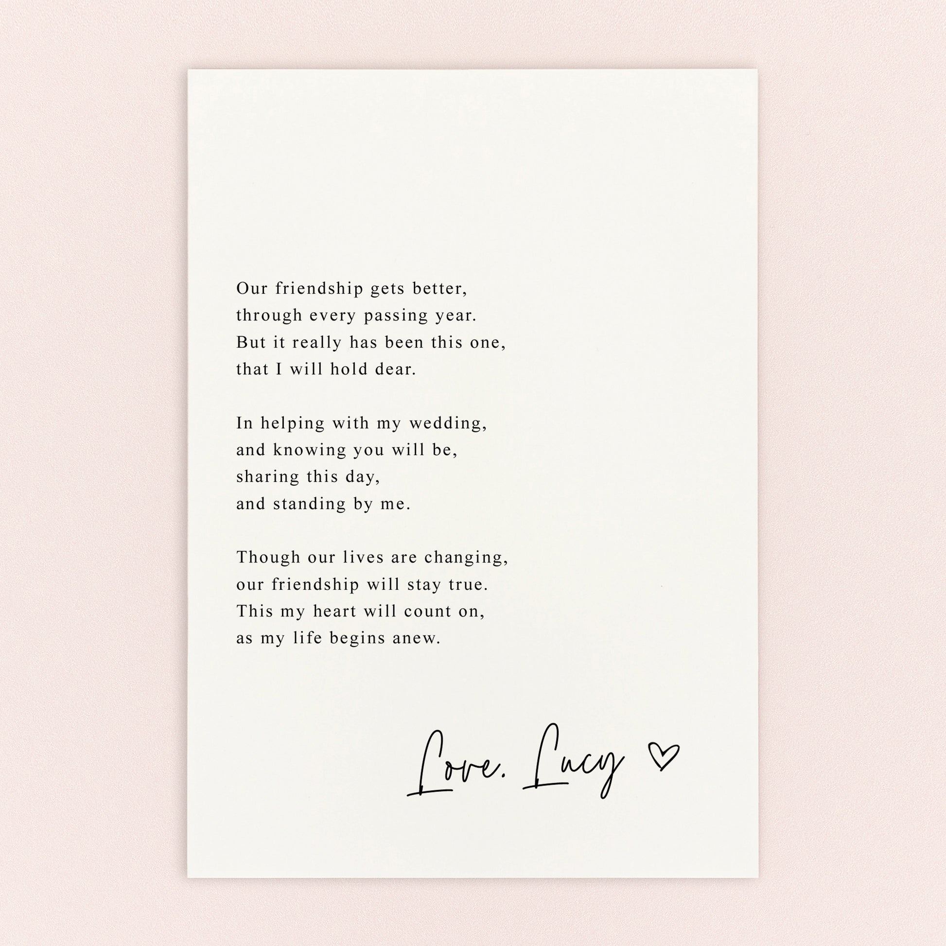 No need for a proof. Please ensure all spellings are spot on; we can't blame autocorrect! If you fancy the same quote as shown, just type 'same as shown' in the personalisation box or type your own message. If you prefer a blank back for a handwritten note leave the chosen personalisation boxes blank. 💕