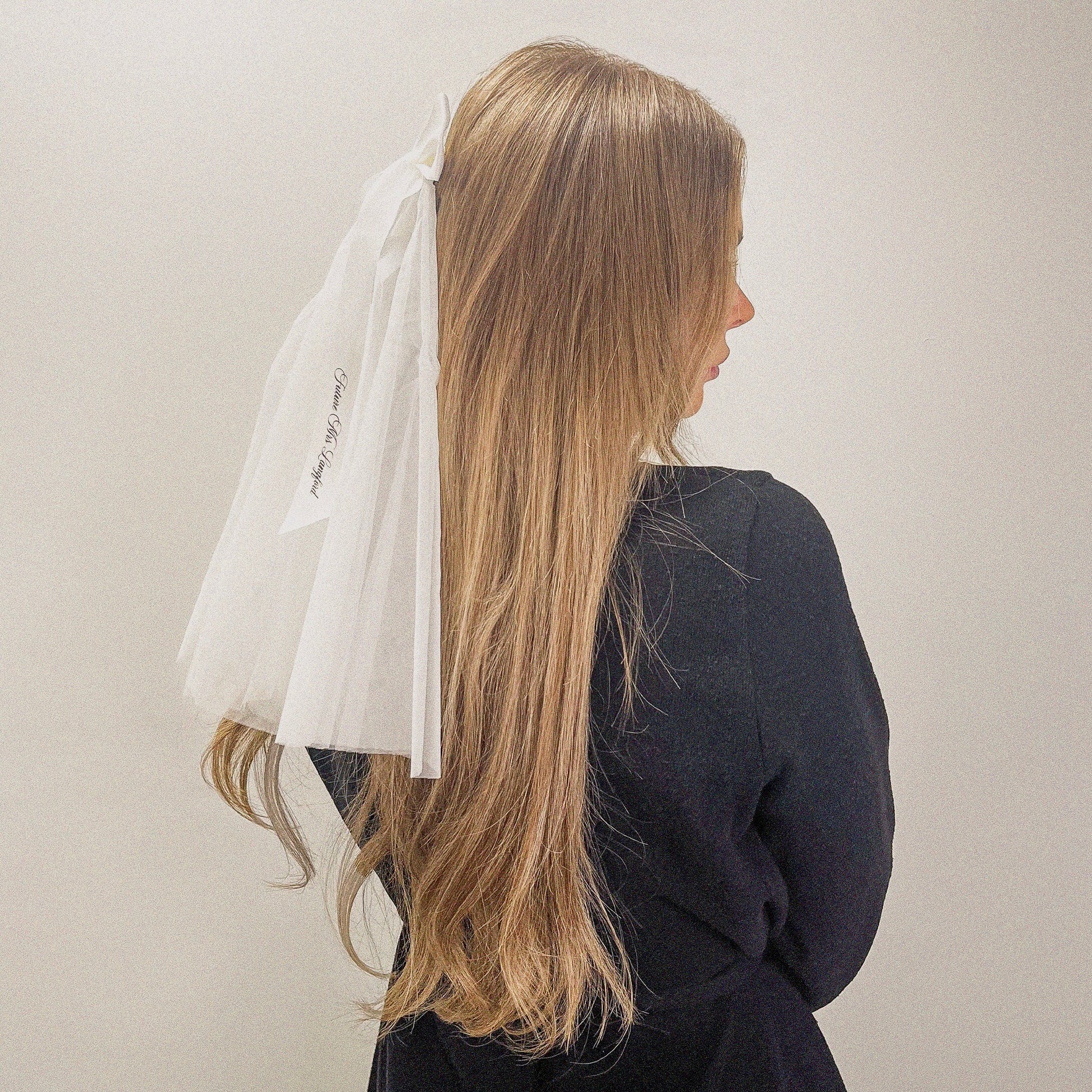 Personalised Mini Bow Veil – the perfect accessory for any bride-to-be.
