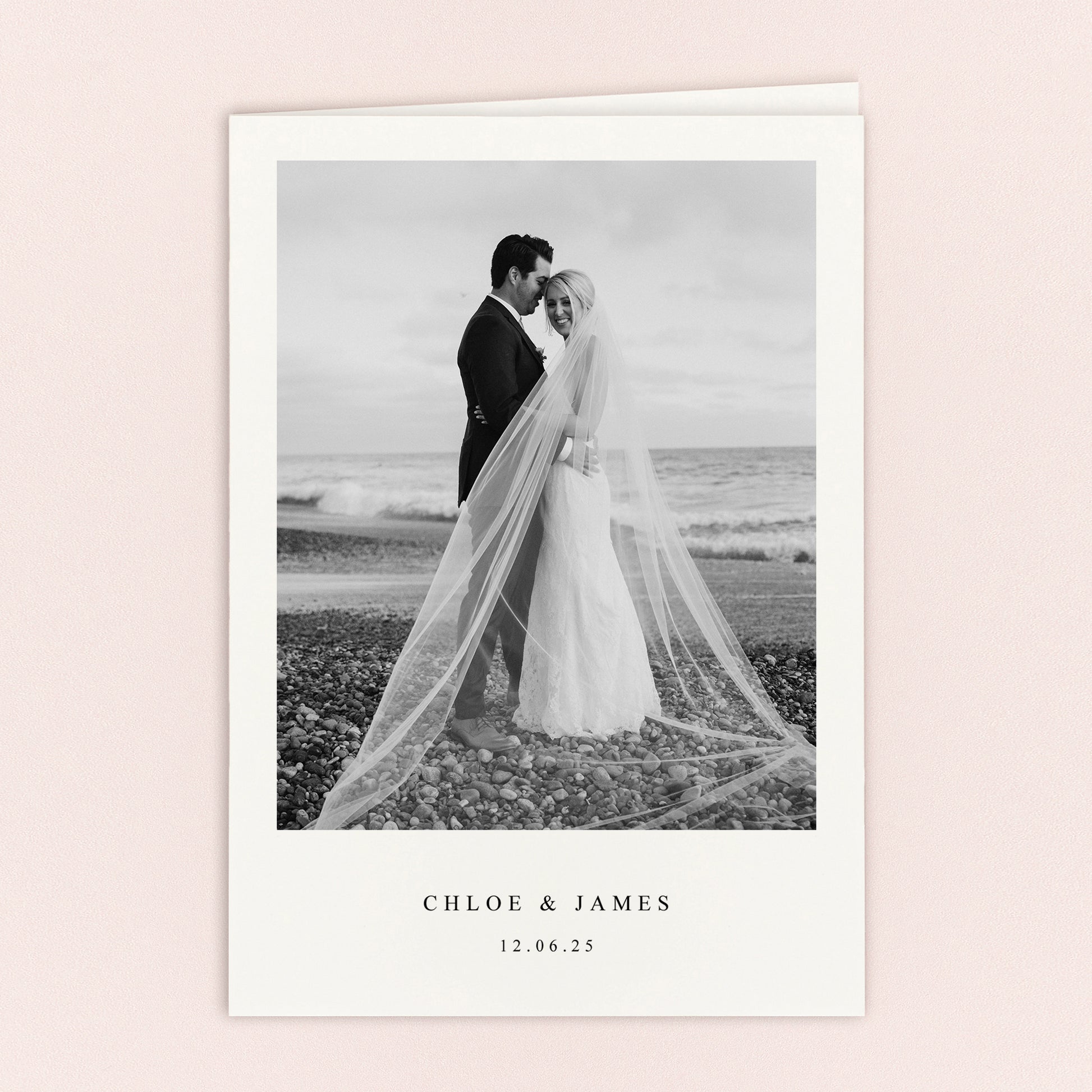 Our Timeless Thank You cards are designed for couples who want something simple, and elegant. Printed as folded cards on luxury cardstock. This is a fixed design personalised with your name, date and photo.